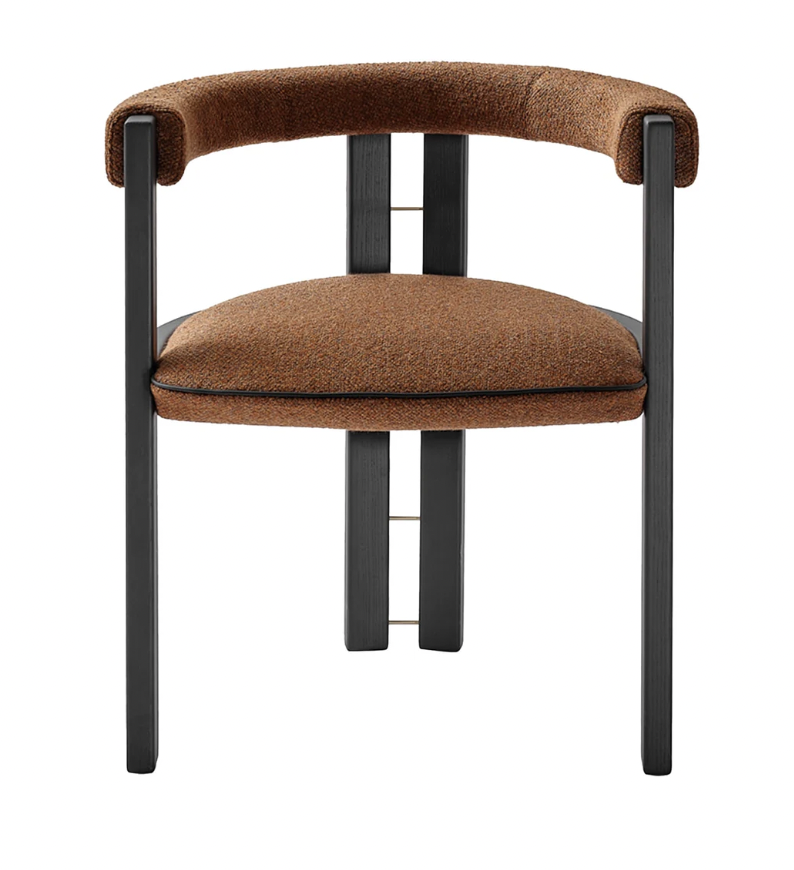 À la fois compacte et sculpturale, la chaise Kumiko se distingue par ses courbes enveloppantes et son allure sophistiquée. Sa structure en frêne teinté, ponctuée de détails en laiton, est associée à une assise généreusement rembourrée pour un confort élégant et maîtrisé. Une pièce au caractère affirmé, pensée pour des intérieurs raffinés.