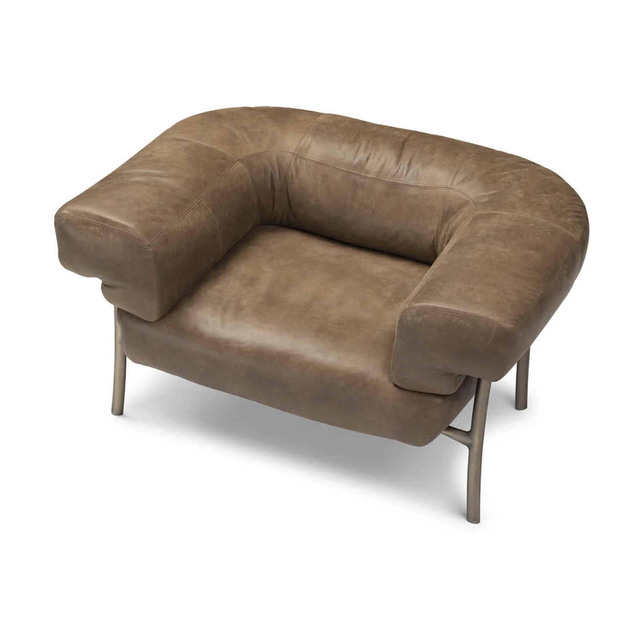 Fauteuil en cuir vintage avec accoudoirs incurvés
